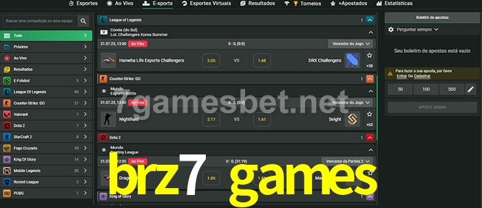 O brz7 games oferece uma grande seleção de opções de apostas em e-sports com probabilidades competitivas